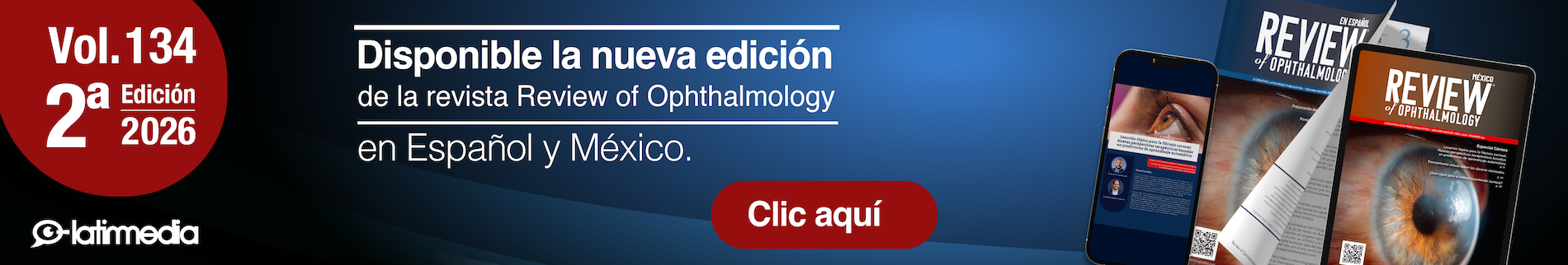 Banner TopconBanner ComercialBanner Revista | Actualidad Ver todo Gotas oftálmicas en desarrollo para el manejo de la retinopatía diabética 16 April, 2026 #Angiogénesis #InvestigaciónClínica Heidelberg Engineering amplía el acceso global a su plataforma digital de visualización quirúrgica 16 April, 2026 #CirugíaDigital #DigitalSurgery ASCRS 2026 consolida liderazgo global 16 April, 2026 #CirugíaOftálmica #InnovaciónMédica Preparación de la superficie ocular antes de la cirugía 16 April, 2026 #CirugíaDeCatarata #córnea | Industria Ver todo Destacado Heidelberg Engineering amplía el acceso global a su plataforma digital de visualización quirúrgica 16 April, 2026 #CirugíaDigital Industria Gaap® Ofteno y Gaap PF: tratamiento de primera línea para el Glaucoma 25 March, 2026 #glaucoma México Pictor Plus, tu aliada móvil para una atención visual de primer nivel 5 February, 2026 #DiagnósticoVisual México El láser Nd:YAG MR Q Supine: innovación en tratamientos oftálmicos en posición supina 15 January, 2026 #CirugíaOcular | Revistas Ediciones Review of Ophthalmology En Español Ediciones Review of Ophthalmology México | Artículos Ver todo Artículo Preparación de la superficie ocular antes de la cirugía 16 April, 2026 #CirugíaDeCatarata Destacado Actualización en terapias farmacológicas 25 March, 2026 #FarmacologíaOcular Artículos Diagnóstico del glaucoma en pacientes con miopía alta 12 March, 2026 #DiagnósticoOcular Artículos Preservación endotelial en cataratas de extrema dureza con trabeculectomía previa: desafíos de la MSICS en escenarios de baja reserva biológica 12 March, 2026 #CatarataHipermadura Artículos Eficacia de Latanoprosteno Bunod como Monoterapia Inicial en Glaucoma Secundario a Pseudoexfoliación 12 March, 2026 #GlaucomaPseudoexfoliativo | Calendario Próximos eventos 11º Congreso SPRV & 20º Foro del GLADAOF 2026-11-04 Sao Paulo, Brasil | Follow us 17.03k 20.4k 2k 1.437 3.320 | Asociaciones Organizaciones y Asociaciones Supranacionales, Regionales y Nacionales Clínicas Eventos ¡Suscríbase a Nuestro Newslettery entérate de todas las noticias del sector oftalmológico!
