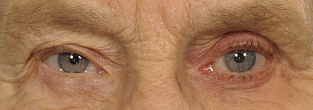 Figura 1. El tratamiento unilateral prolongado del ojo izquierdo con bimatoprost al 0,03 % dio lugar al desarrollo de periorbitopatía asociada a análogos de prostaglandinas, caracterizada por atrofia del tejido adiposo del párpado superior, profundización del surco palpebral superior, hipertricosis e hiperpigmentación periorbital.
