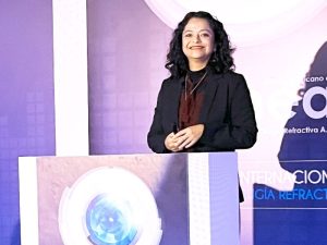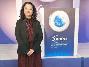 La Dra. Cristina Pacheco complementó la ponencia enfatizando la necesidad de cuidar la salud de la superficie ocular, especialmente en pacientes que han experimentado procedimientos quirúrgicos. Resaltó que la lágrima desempeña funciones ópticas cruciales y es vital mantenerla sana y equilibrada para asegurar el bienestar del paciente durante su recuperación.