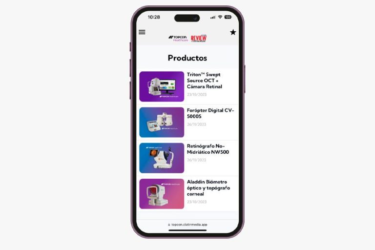 La WebApp es una herramienta interactiva que facilita el conocimiento de las ventajas y beneficios de los productos de Topcon, como Triton™ Swept Source OCT + Cámara Retinal, Aladdin Biómetro óptico y topógrafo corneal, Chronos sistema de refracción binocular y Maestro2 Cámara de fondo de ojo OCT.