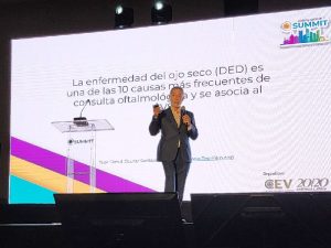 El Dr. Suárez abordó en su charla que la disfunción de las glándulas de meibomio (DGM) es la principal causa de la enfermedad del ojo seco (DED) a nivel mundial. Destacó que el uso intensivo de computadoras, teléfonos inteligentes y tabletas está contribuyendo significativamente al incremento de los casos de CVS, una condición caracterizada por una serie de alteraciones visuales y síntomas oculares.