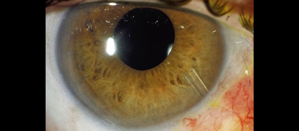 - Sinequias anteriores periféricas: se generan por el contacto constante del AS con la malla trabecular y el iris, llevando a un cierre angular progresivo y crónico, alterando el control de la PIO. En estos casos, resulta crucial la intervención precoz para evitar la mayor generación de sinequias, previniendo el cierre angular de manera irreversible 1,9.