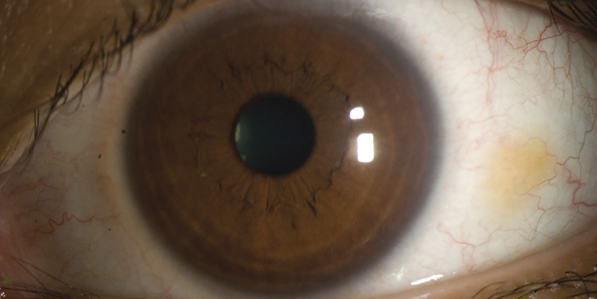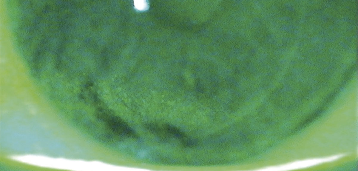Figura 1. Queratopatía punteada inferior en un paciente con antecedente de LASIK durante las mediciones preoperatorias para cirugía de catarata.