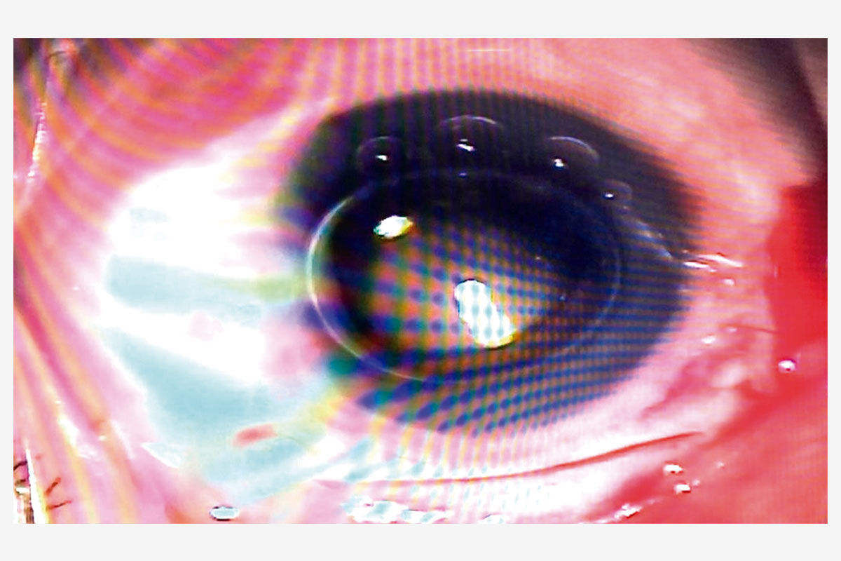 A la exploración, destacaba una catarata hipermadura, PIO de 9 mmHg y daño glaucomatoso avanzado (copa/disco 0.9). La estrategia quirúrgica se definió mediante la microscopia especular y la UBM: un RCE crítico de 997 células/mm² (Figura 3) y un cristalino de gran diámetro anteroposterior con lens vault aumentado (Figura 4).