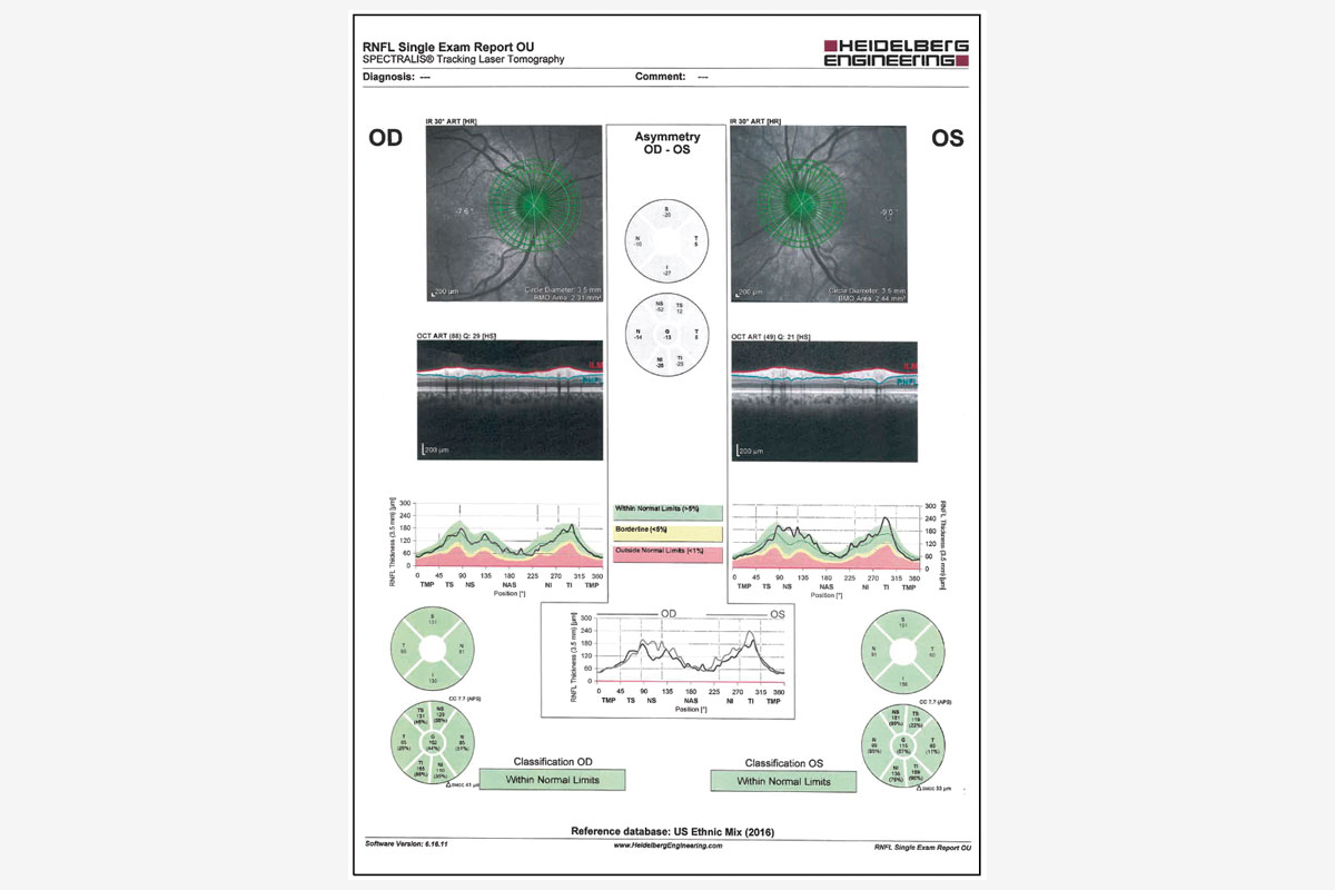 Figura 4. Paciente con hipertensión ocular sin daño en el nervio óptico. Este paciente es candidato para una LIO multifocal. Fotos: Shivani Kamat, MD.